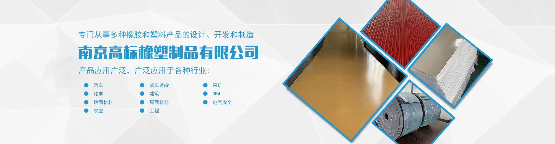 南京高標(biāo)橡塑制品有限公司是一家專業(yè)的橡膠板、橡膠制品和熱塑性塑料產(chǎn)品的制造商。主營產(chǎn)品:三元乙丙橡膠板,丁腈橡膠版,氯丁橡膠板,丁苯橡膠板,丁基橡膠板,天然橡膠板,硅橡膠板,氟橡膠板,絕緣,防靜電,導(dǎo)電橡膠板,夾布,夾金屬網(wǎng)橡膠板,耐酸堿橡膠板,耐油橡膠板,耐磨橡膠板,阻燃橡膠板,阻尼橡膠板,減震橡膠板,防滑橡膠板,橡膠墊片等。 高標(biāo)橡塑專門從事多種橡膠和塑料產(chǎn)品的設(shè)計(jì)、開發(fā)和制造。我們的產(chǎn)品應(yīng)用廣泛。廣泛應(yīng)用于各種行業(yè),包括:汽車,貨車運(yùn)輸,采礦,化學(xué),建筑,OEM,地面材料,屋面材料,電氣安全,農(nóng)業(yè),工程等。 高標(biāo)橡塑的客戶服務(wù)于許多行業(yè),包括墊片切割、分銷商、工業(yè)用品零售商和批發(fā)商。自